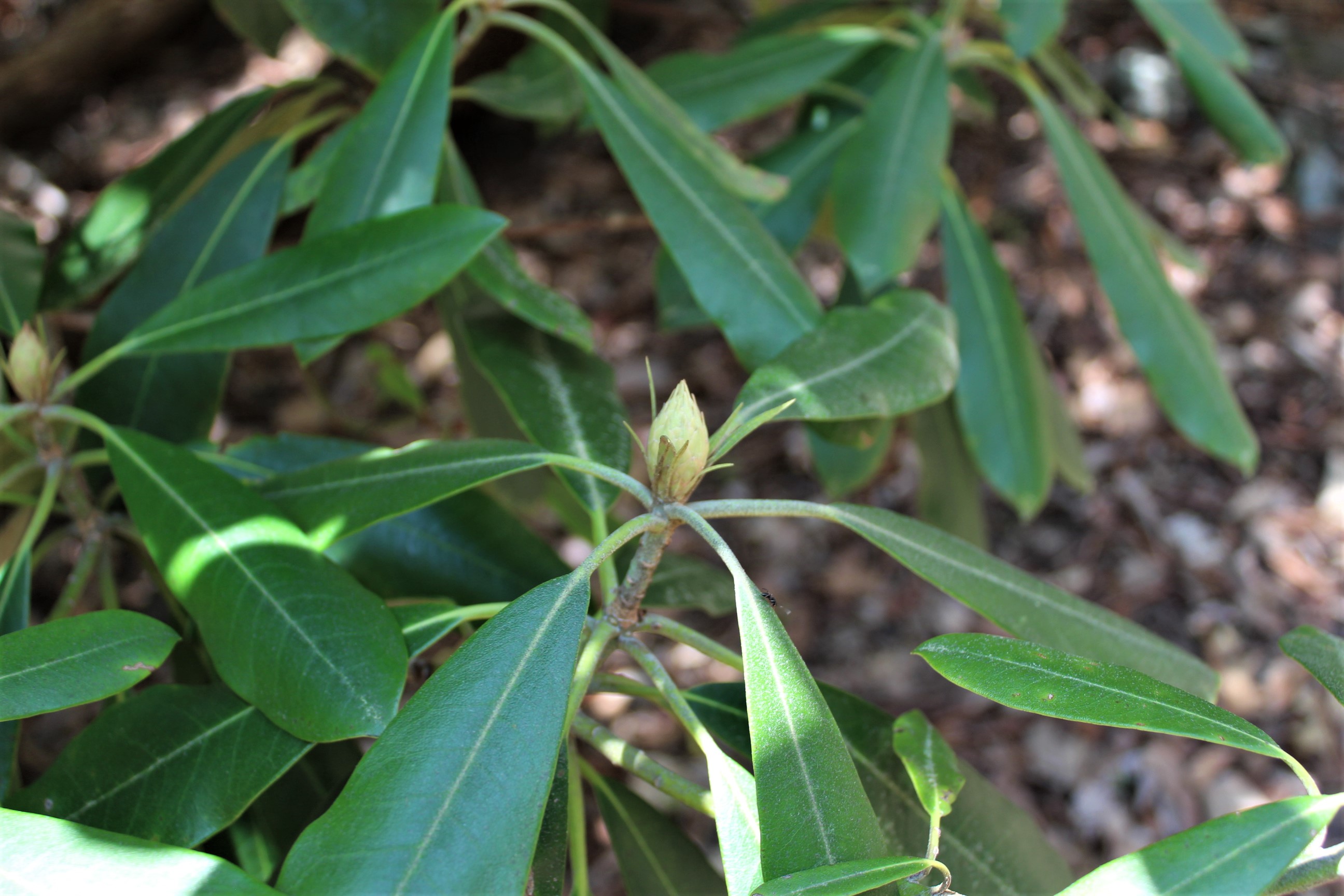 The rhododendrons finish the hymn with cool shade over the creek shore.