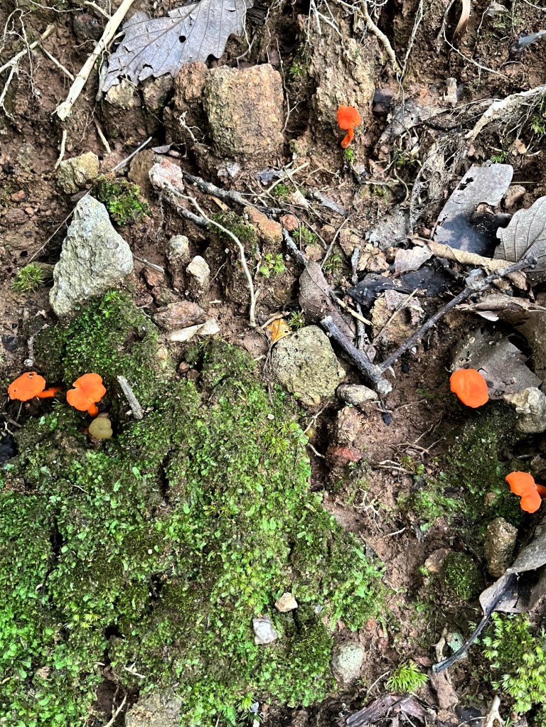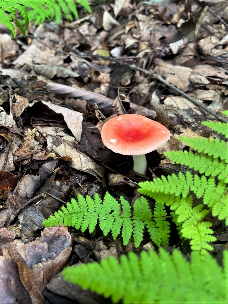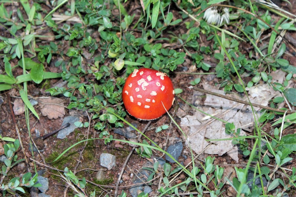 The next morning the dogs and I head out into the woods and search for the glory of God in His created world. And this is going to sound a bit odd, but I love to take pictures of toadstools. They pop up everywhere after a pouring rain. I would almost say they “bloom.” There is a special beauty in the colors and shapes and sizes. And all the different ones that appear in even a short walk is amazing. God created so many different ones.