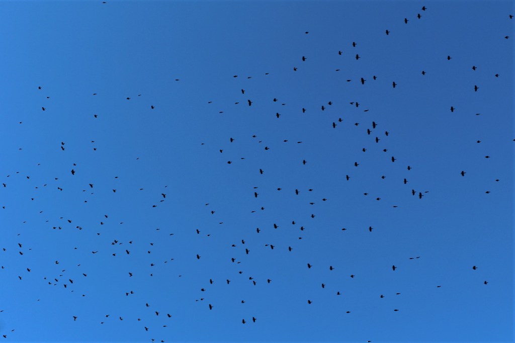 Blackbirds fly south, looking for warmer places to nest.
